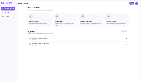 NoteGPT began on iOS and Android as a fast way to convert lectures, meetings, and messy notes into structured, digestible content. The new web app takes that same experience and enhances it with a full desktop workspace: